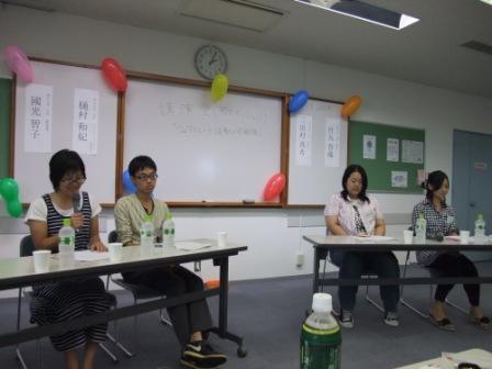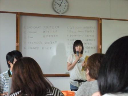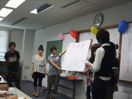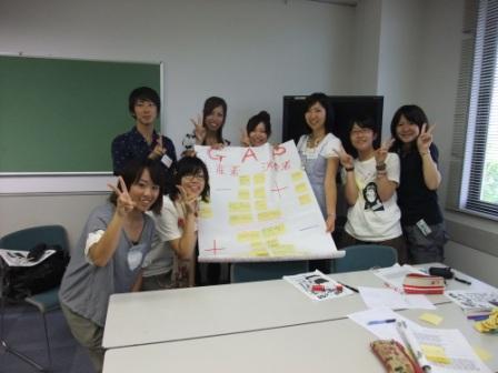 3、「ビジネスマン×フェアトレード」 会社にフェアトレード導入 一応簡単ではありますが、全ての班の発表を挙げてみました ![]() 間違ってたら教えてください ![]() 私たちのグループはというと、 場所はショッピングモール。第3日曜日に開催。 小学生以下を対象にし、料理教室を開き、同時にフェアトレンジャーという戦士の劇も開催する、 というプラン ![]() 詳しく説明しちゃいますと・・・ まず、フェアトレンジャーという戦士を作り、フェアトレードの意義を伝える劇をする ![]() 簡単にわかりやすくフェアトレードを知ってもらう ![]() また、フェアトレンジャー効果で料理教室にお客さんを集める ![]() そして料理教室に親子で参加することによって、 小学生を対象にしながら、購買層の主婦にフェアトレードを知ってもらえる ![]() また、その日作った料理のレシピを配布し、 料理に使用するフェアトレードの材料をその場で買えるようにすることで、 家に帰ってもまたフェアトレード商品を使った料理をしてもらえるという「継続」ができる ![]() この活動によって、ショッピングセンターへのフェアトレード商品の導入も促せる ![]() こんな感じですね^^ ![]() まず、私たちがフェアトレンジャーとなってキメ台詞、キメポーズをして登場したのですが、、 めちゃくちゃ恥ずかしかったー ![]() ![]() この前日練習がとても楽しかったんですけどね (笑)フェアトレンジャーは私にサミットの思い出の1つをくれました。 今回のアクションプランでは実行するのが2こ・・・だったかな? 頑張ってほしいです ![]() ![]() でも、あんなに全国の人が集まったなら、なにかアクション起こしたかったなーって。 帰ってきてから思いました ![]() 去年のサミットのちょこっとloveみたいに、全国で一斉にアクションを起こす、っていうの。 すごくいいと思うし、これこそこのサミットで出来たつながりの集大成なのかなって ![]() とてももったいないことしたなーって思ったので、 もし来年いけたら実現可能なアクションプランを考えて、実行したいと思いました ![]() そして、この気持ちが収まらないので、さっそく周りの人に相談して地元で何かできないか考えてみてます ![]() 「やりたい」と思ったことを形にするのは大変だけどすんごーく楽しいよね ![]() こうして前半が発表し終わり、いよいよサミット総括へ。 1~3日までの振り返り。 このサミット中の写真を動画にしたものが作られていて観賞 ![]() サミット実行委員の方のブログによると朝5時までかかったらしい。お疲れ様です ![]() 3日間のまとめをしました! そして最後、閉会式。 サミット実行委員会の方々の紹介 ![]() そしてFTSNのそれぞれの支部の代表が引退し、新しい代表が発表されました。 FTSN JAPANのありさちゃんの挨拶では、動画をみました 手が込んでる!フェアトレードに対する熱い想いが伝わってきてなんだかうるうるきました ![]() ![]() ![]() 実行委員のみなさん、ありがとうございました。 とても手際が良く、スムーズにサミットを楽しめました。 こんなに素晴らしいサミットを開催することは、私には計り知れないほど大変だったのだと思います。 お疲れ様でした ![]() 本当にありがとうございました ![]() 3日間が楽しかったです ![]() 閉会式も終わり、みんなで記念撮影 ![]() 夜には梅田のビアガーデンで打ち上げ ![]() サミットに参加して本当によかったです! この出会いに感謝し、大切にしたいと思ってます ![]() みんな、3日間ありがとう!!! これからもよろしくお願いします^^ ![]() 宮川明日美 またまた明日美です。 2日目その②ですー。つづき ![]() 日本のフェアトレード事情「Student Fair Trade Action in Japan」から。 ここでは全国各地で活動している学生4人の経験を話してもらいました。 連絡の仕方や運営の仕方においてどこの団体も抱える悩みは同じものが多くあると感じました。 そして、一生懸命動いた結果得たものは、経験となり、考えとなり、自身につながるのだなと思いました。 海外のフェアトレード事情「学生が見た!!途上国のフェアトレード」 実際に海外のフェアトレードの生産の現場に行った3人の話を聞きました。 私が印象に残ったのはバングラディッシュに行った有沙ちゃんの言ったこと。 フェアトレードの生産者に会って話した時、生産者は「フェアトレードになっても何も変わらない」と言っていた、というもの。 私はこれを聞いて、正直、意味不明になりました (笑)生産者の状況が変わらないでフェアトレードの意味あるのか!?と。 これを聞いたある人の意見としては、 「フェアトレードでよくなっていて欲しいという考えを生産者に押し付けているんだ。」というもの ![]() また、違う人と話していたのは、 「フェアトレードで売値が高くなるけど、その高いぶんのお金はどこに行くの?」 「モノがいいから、プレミアムが加算させるから高いんじゃないの?」 「それなら安くものを作って売れるほうがいいじゃん。高かったら売れないもん。フ